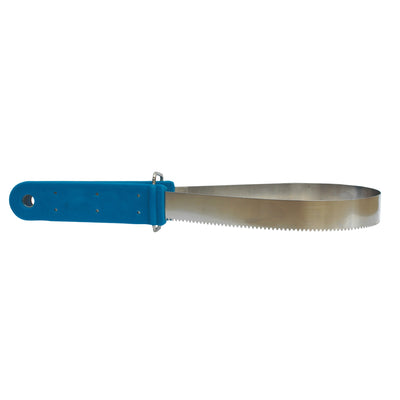Sweat scrapers are used to remove sweat from your horse's body after exercise as well as removing excess water from your horse's hair coat after bathing, which aids in drying the horse faster. Horse sweat scrapers come in simple aluminum as well as brightly colored plastic in ergonomic designs; they are a must-have addition to your grooming tools. When your horse starts shedding its winter coat, use of a shedding blade or shedding brush helps speed up the process of removing the shedded hair from the coat. Horse shedding blades are a long metal strip with teeth on one side which helps grip the hair; they should be used gently on the horse's body. The scotch/curling shedding comb for horses is useful for shedding out larger areas like the rump. A fiberglass 'slick' block should be used along the legs to help with hair removal.