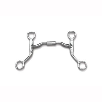 Snaffle mouthpieces are a popular choice for horses of all ages. Western snaffle bits are smooth and joined in the middle. The snaffle mouthpieces used on O ring, loose ring or dee ring snaffles are used to train young horses to yield to rein pressure or school older horses on basic training maneuvers. Shanked snaffle bits used with a curb chain are leverage bits and put pressure on the horse's chin and poll. Short shank snaffle bits like Argentine bits or Tom Thumb bits are used for young horses or novice riders. Long shank snaffle bits have more leverage than short shank bits. HorseLoverZ carries a wide variety of snaffle bits for horses in miniature horse bits, pony bits, horse bits or draft horse bits. Choose sweet iron, copper, stainless steel, black steel, or chrome mouthpieces.