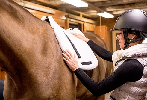Choose an all purpose English saddle blanket from brands like Equine Couture, TuffRider, or Lettia.