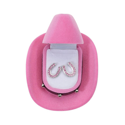 AWST Int'l Horseshoes Earrings with Cowboy Hat Box