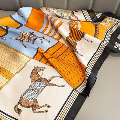 AWST Int'l Horses in Blankets Satin Scarf- 28" X 28"- Orange