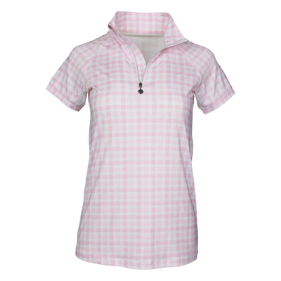 Dapplebay Ladies Gingham Short Sleeve 1/4 Zip Riding Top