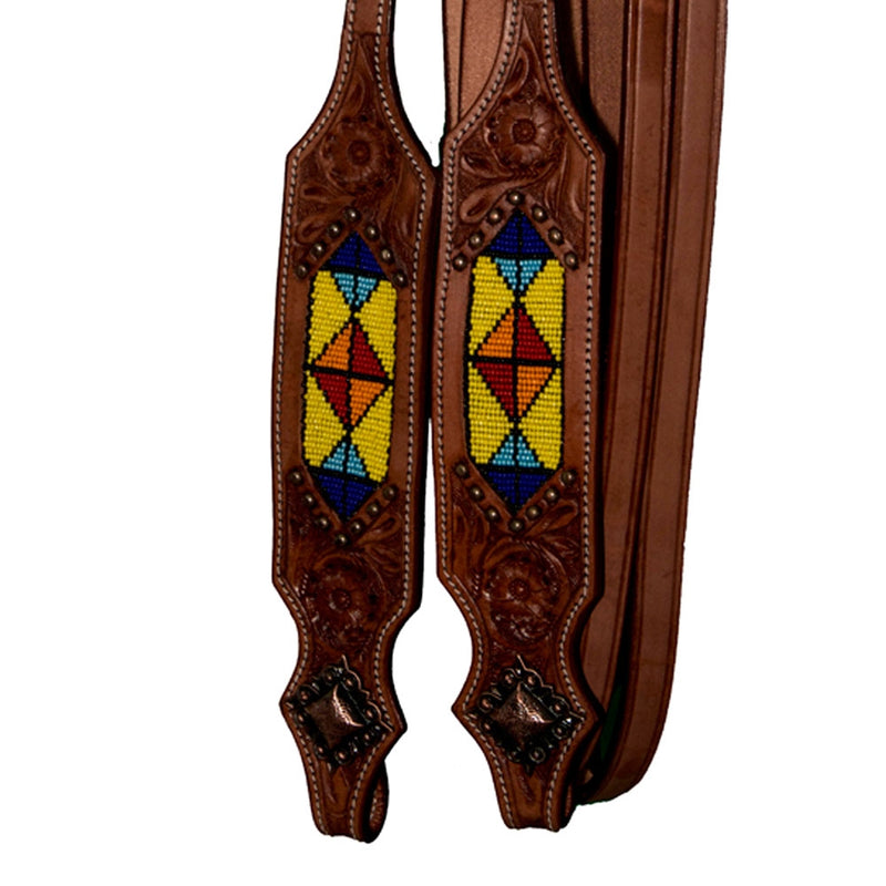 Intrepid Western Reins With Yellow Beading And Metal Studs