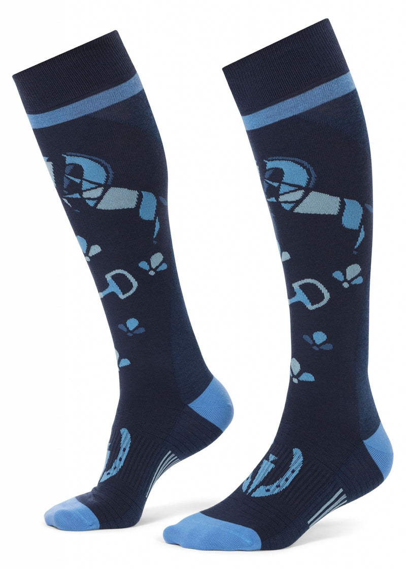 Our boot socks for sale or knee high boot socks protect the leg from rubs while wearing riding boots. Thin boot socks under your tall boots for a custom fit from brands like Ariat. Couture boot socks for a fashion statement from brands like Equine Couture. Express your love of horses with equestrian themed boot socks.