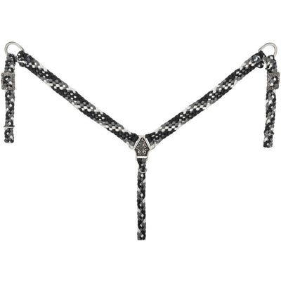 Breast collars are used for Western horse riding. Western breast collars keep the saddle from sliding back when going up hills. Breast collars are also used strictly for a prettier turnout in Western Pleasure. They come in leather or nylon styles. Breast collars with headstalls come in sets. Western horse breast collars come in pony through horse sizes.