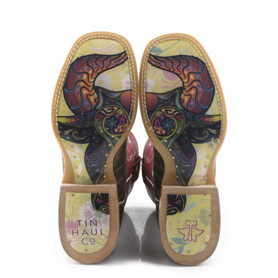 Tin Haul Ladies Square Toe Boots - Super Nova Star with Bull Doodles Sole