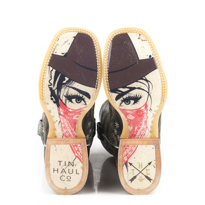Tin Haul Ladies Square Toe Boots - Bandana Bandit with Wild Rag Sole