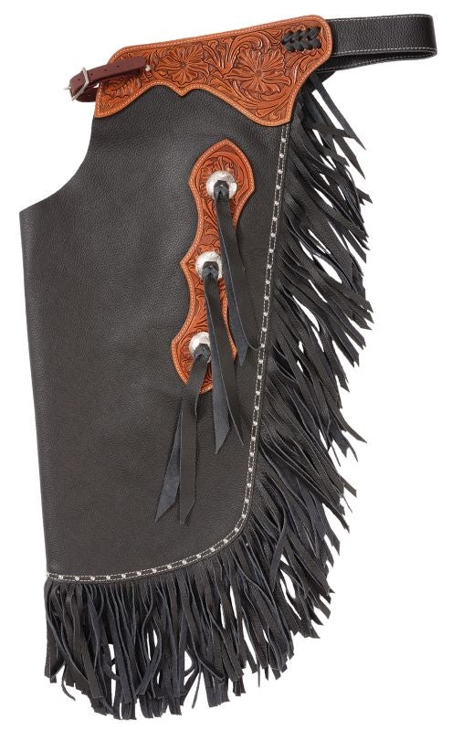 Tough1 Premium Leather Chinks with Floral Yoke & Double Fringe
