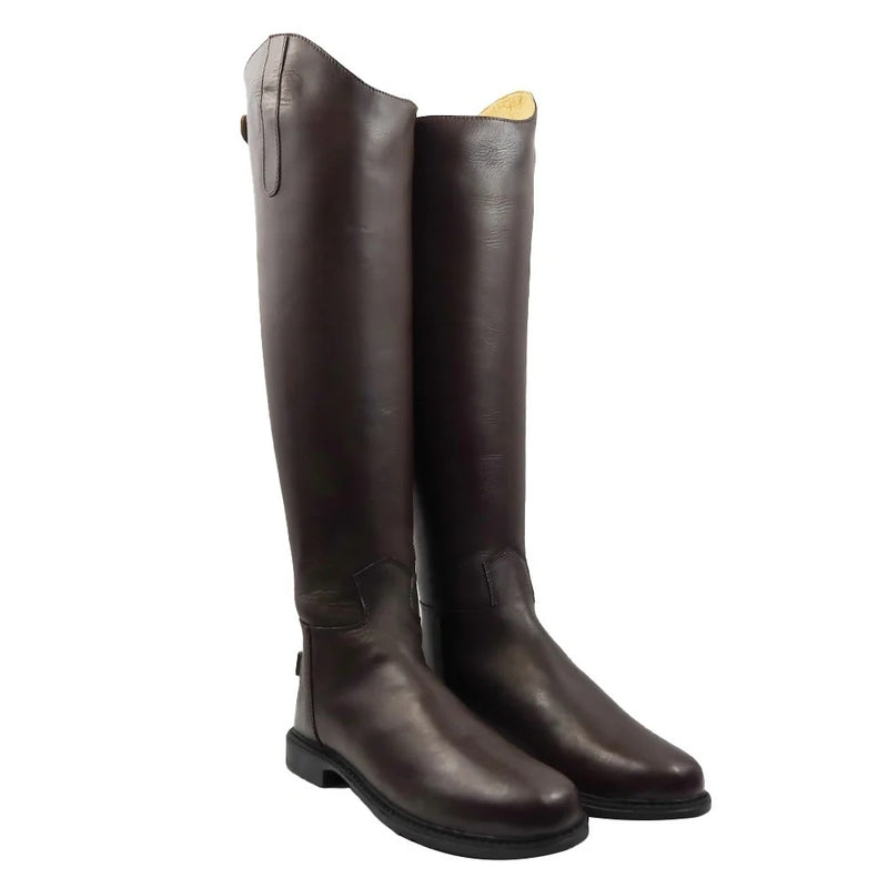 English dress and dressage riding boots for the serious dressage competitor. With typical English riding boot style, dress dressage boots typically have the outside cut higher at the top for a classic look in the show ring and added elegance.