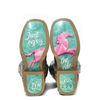 Tin Haul Big Kids Boots - Gitcha a Good One with Just Enjoy the Ride Sole