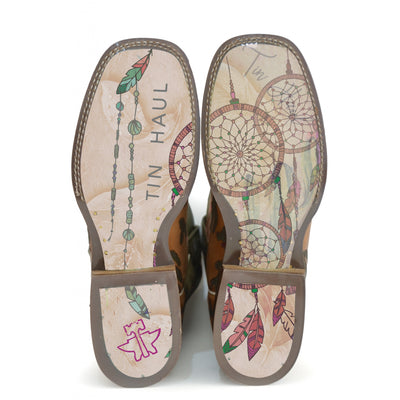 Tin Haul Ladies Square Toe Boots - Southwest Dreamer with Dream Catcher Sole