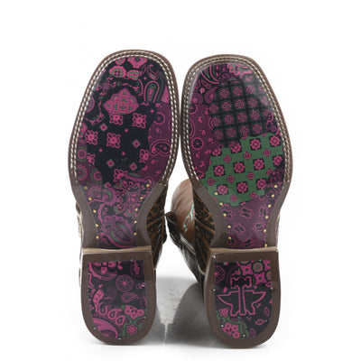 Tin Haul Ladies Square Toe Boots - Paisley Queen with Bandana Patchwork Sole