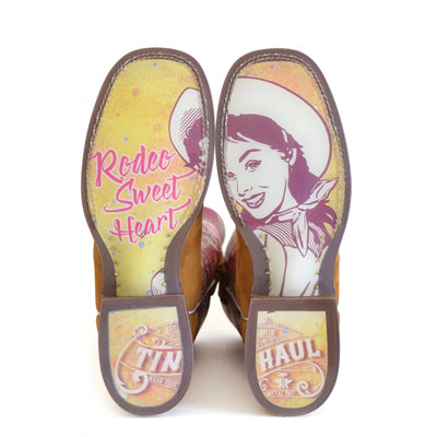 Tin Haul Ladies Square Toe Boots - Rodeo Sweetheart with Retro Cowgirl Sole
