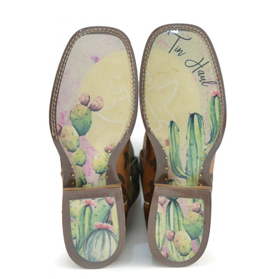 Tin Haul Ladies Square Toe Boots - Cactaplicity with Desert Moon Sole