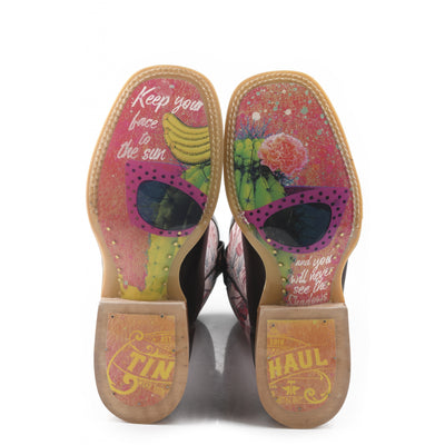 Tin Haul Ladies Square Toe Boots - Pinktalicious with Cactus Shades Sole
