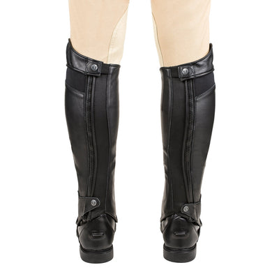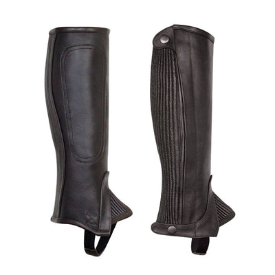 Half chaps protect the lower leg while riding. Leather and synthetic half chaps are good alternatives to tall boots for schooling. English half chaps also assist with keeping the leg in the correct position with their grip.