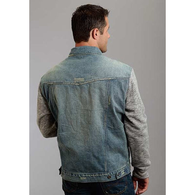 Stetson Mens Holiday Knit Sleeve Stretch Denim Jacket