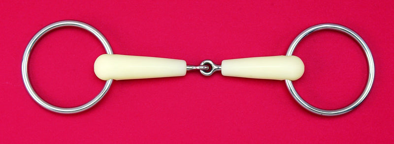 Loose ring snaffle bits have a broken mouthpiece with attached rings. The rings rotate around on the mouthpiece making it more difficult for the horse to brace against. A Loose Ring snaffle bit promotes relaxation and chewing from the horse. The loose ring snaffle is one of the mildest bits for lower level Dressage, Endurance, or All Purpose. They come in a large range of sizes to suit from pony to large horse.