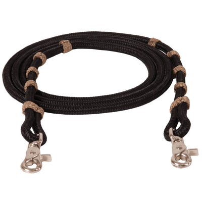 Mustang Flat Poly Braided Roping Reins with Leather Water Loop/Trigger Snap Bit Ends