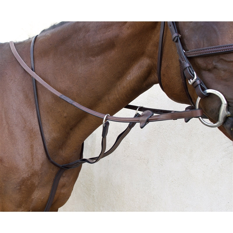Running Martingales control the horse's head height and prevent the horse from throwing its head high. Running Martingales are used for Show jumping, Eventing, or Polo.