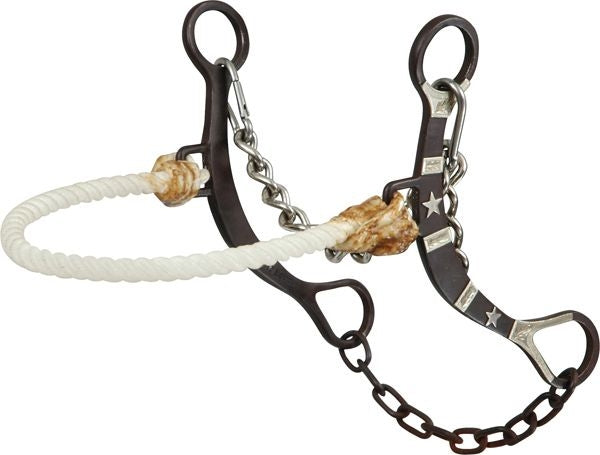 Horse side pull bridles and headstalls make great alternatives for communicating with your horse during training. Side pull headstalls do not have a bit. They work off pressure points on the horse's face. Side pull bridles normally come in leather but can also come in rope varieties. The nosebands are normally rope or leather. Side pull headstalls can come complete or just as a replacement noseband. Side pull hackamores come in cob to oversize.