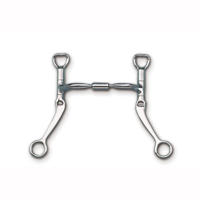Snaffle mouthpieces are a popular choice for horses of all ages. Western snaffle bits are smooth and joined in the middle. The snaffle mouthpieces used on O ring, loose ring or dee ring snaffles are used to train young horses to yield to rein pressure or school older horses on basic training maneuvers. Shanked snaffle bits used with a curb chain are leverage bits and put pressure on the horse's chin and poll. Short shank snaffle bits like Argentine bits or Tom Thumb bits are used for young horses or novice riders. Long shank snaffle bits have more leverage than short shank bits. HorseLoverZ carries a wide variety of snaffle bits for horses in miniature horse bits, pony bits, horse bits or draft horse bits. Choose sweet iron, copper, stainless steel, black steel, or chrome mouthpieces.