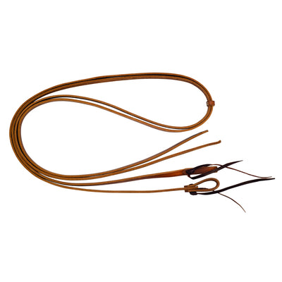 Split reins are two separate reins that are held together in your hand while you ride. Split reins are the classic rein of western riding. Some of the more popular styles include braided split reins, leather split reins, and rawhide split reins. One of our most popular brands are the Billy Cook split reins. Split reins can be attached by leather conchos, Chicago screws, or tied with leather strings. Split reins are found from miniature horse size up to draft horse.