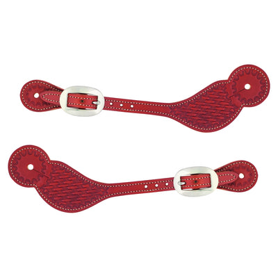 Martin Saddlery Cowboy Mini Basket Tooling with Dyed Edge Spur Straps - Sold as Pair