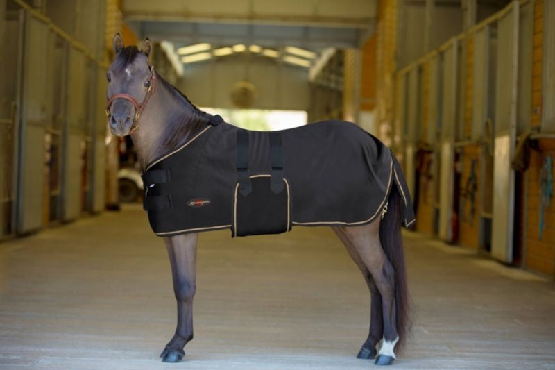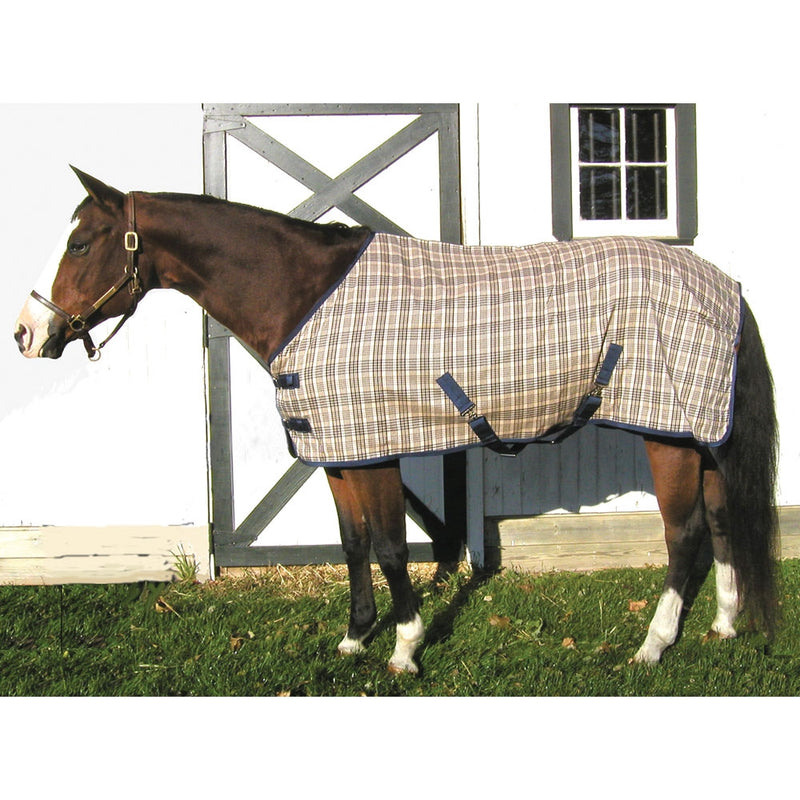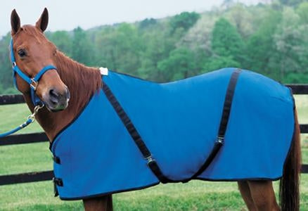Stable sheets are a lightweight layer sheet. Stable sheets keep your horse warm as well as clean on cool days or nights. Stable sheets can be layered if need be for added warmth. Stable sheets can come in a variety of fabrics. The most popular are cotton, nylon, acrylic, canvas. Cotton and nylon stable sheets for horses are not meant for turnout as they are not waterproof. Stable sheets usually just have bias surcingles with a closed or open front. Stable sheets for horses are commonly used for trailering.