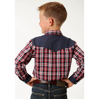 Roper Boys Retro Contrast Western Shirt - Patriotic Plaid