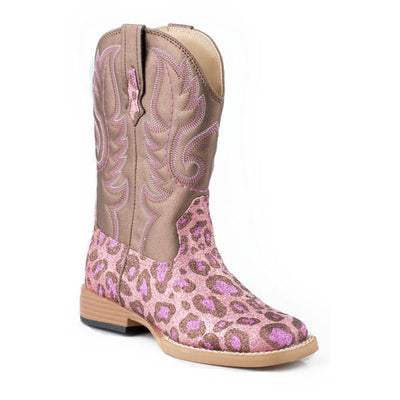Roper Girls Kids Glitter Leopard Square Toe Western Boot
