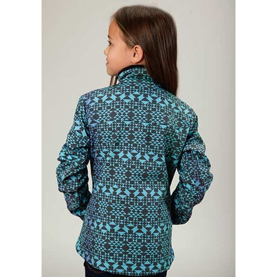 Roper Girls Technical Soft Shell Jacket - Navy/Fuscia Geo Print