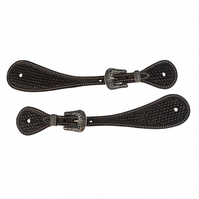 Tabelo Shaped Spur Straps with Basket Tooling