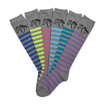 AWST Int'l "Lila" Horse Head Striped Knee-High Socks - 6 Pack