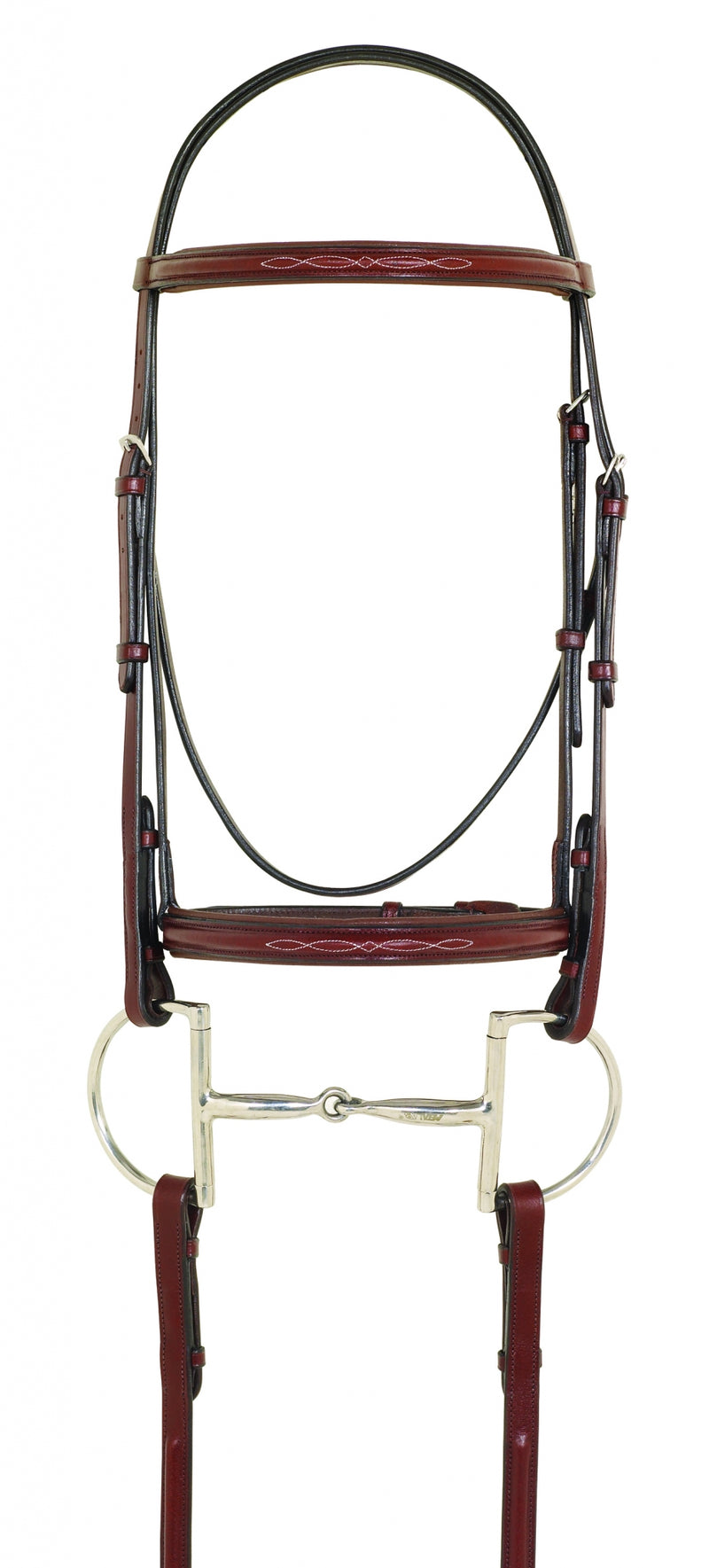 Camelot Fancy Stitched Round Wide Padded Monocrown Bridle with Reins