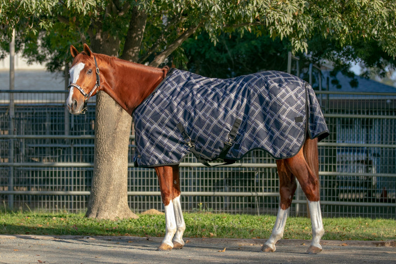 Waterproof rain sheets for horses keep your horse or tack dry in inclement weather. Waterproof horse rain sheets are often designed to cover the horse as well as tack so that a rider can ride out in the rain or keep horse and tack dry while waiting ringside in the rain. Waterproof horse rain sheets for sale come in different deniers and durability. These rain blankets for horses generally will have cross surcingles and leg straps to ensure they do not slip.