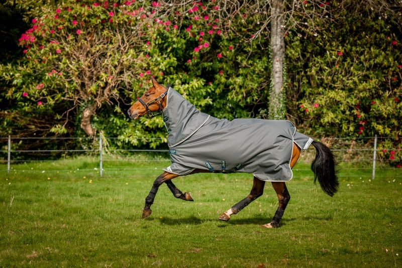 Our secure and easy-to-use V-Front Closure system, Surefit Neck, and unique dual leg arch design allow your horse to move and graze without restriction, while the three cross surcingle design, tail flap and tail strap offer a snug and comfortable fit. Included is a detachable hood for further flexibility and reflective strips for enhanced visibility when turning out, bringing in or for evening checks by flashlight, Amigo has you and your horses needs covered!
