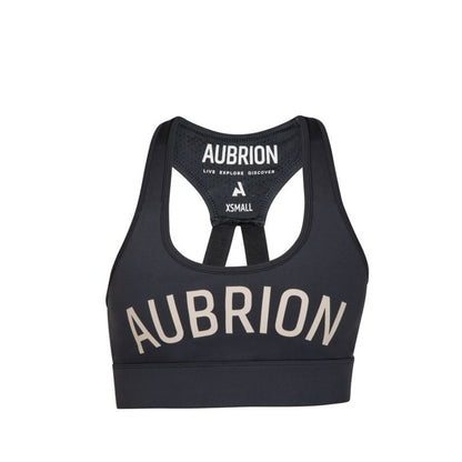 Enhance your endurance with the Power Sports Bra. Supportive and stretchy, the flexible double layer construction allows the use of cup inserts for a custom fit, a deep chest band keeps you feeling supported during exercise or riding activities. Rapid-dry technology wicks moisture away keeping the skin comfortable, a free-flow back insert and inner mesh linings offer heat release at high intensity. The racer style back features signature elastic inserts, giving shoulders plenty of unrestricted mobility performance. Overlocked stitching ensures bulk free flat seams to prevent chafing. Key features: medium support, double layer cups, removable moulded inserts, free-flow heat release panels, signature elastic straps, anti-rub linings, rapid-dry moisture management, secure underband, comfort seams, Aubrion React logo prints.