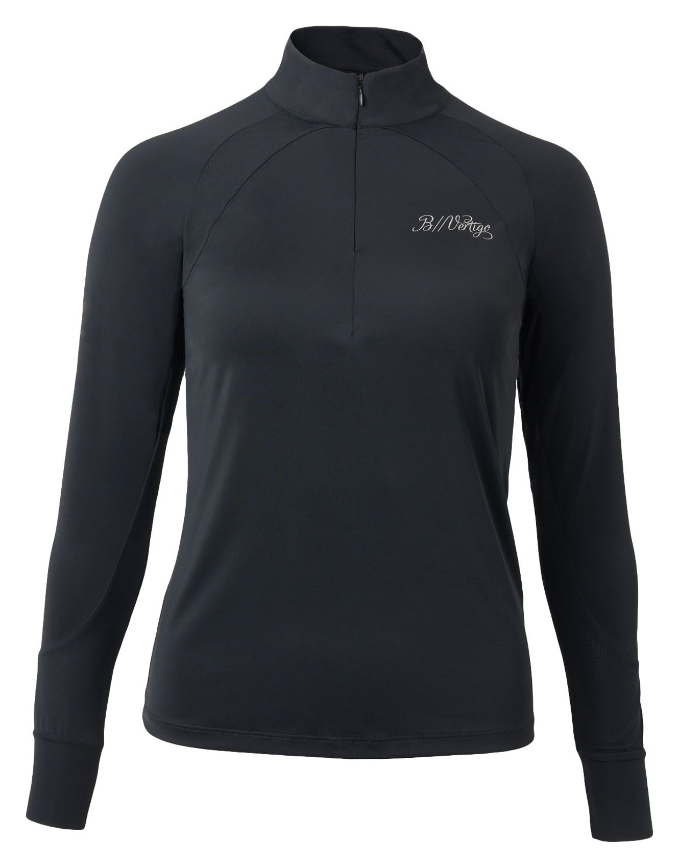 The B Vertigo Nancy women's training shirt keeps you comfortably cool during training. The mesh inserts long the sleeves and collar bone add to the breathability of the wicking, and cooling main fabric. The half zip reaches up to the mock neck and makes putting on easier. Thanks to the UV protection the shirt is also perfect for outdoor riding.