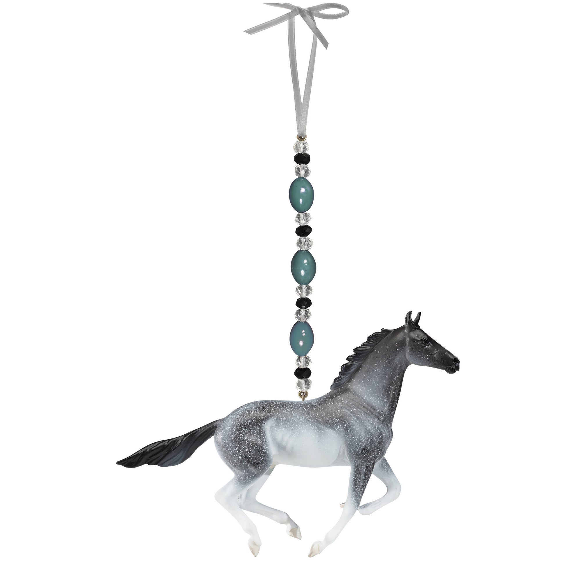Nothing is more beautiful than a horse in motion and it shows in the Breyer Bejeweled Ornament! This galloping blue roan is accentuated by the strand of jewel beads it hangs from. The beads will catch the light and add a touch of shimmer to your tree!