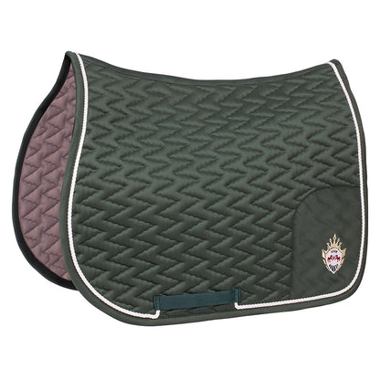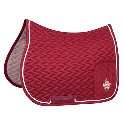 Turn heads at the barn with Equine Couture's Wellington All Purpose Saddle Pad. Designed with a unique, jagged quilted design, this saddle pad provides a comfortable, tender cushion that's ideal for your horse, but also durable for all-day riding. Other features of this saddle pad include an attractive contrast rope trim around the edges for that extra flair.