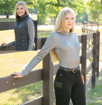 FITS Ayra Long Sleeve Fall-Winter Shirt is soft, stretchy, and perfect for layering with your favorite jacket or vest. It features a quarter-zip neckline and offers a perfectly polished look for lessons and clinics.
