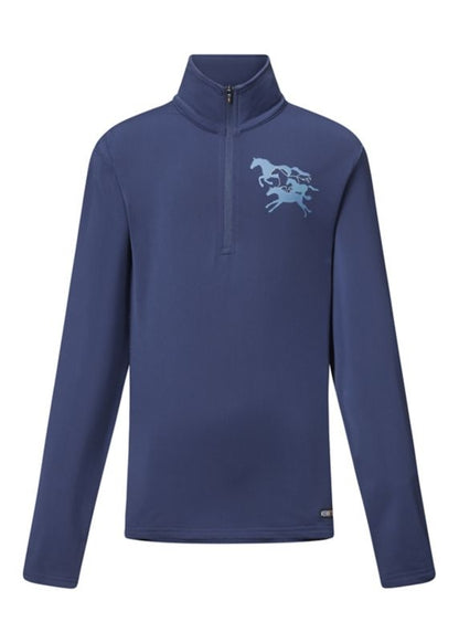 A technical fleece riding top for kids who ride through the fall and winter. Lightweight fleece is softly brushed inside for warmth and comfort and has a smooth exterior that helps leave hay and horsehair at the barn. Zip neck lets kids control ventilation, while the stretchy, technical knit breathes for comfort under jackets.
