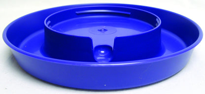 Screw-on base combines with the Little Giant 1-Gallon Screw-On Waterer Jar (Item No. 666, sold separately) to make a gravity-feed waterer. 9 inch diameter by 1.5 inch high. Made of heavy-duty polystyrene.