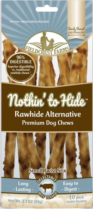 Fieldcrest Farms Nothin' to Hide chews are a wholesome beef flavored rawhide alternative that provides a long lasting, highly digestible chew for your pet.