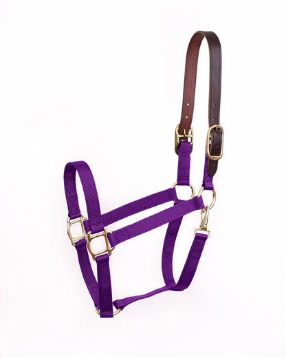 Perri's Economy Nylon Safety halter is the breakaway halter you've been looking for - at the affordable at the price you want and the quality you expect from Perri's. We started with double stitched nylon webbing, and added soft-edged, brass plated hardware, including a convenient snap at the throat. The Economy Nylon Safety halter has a double buckle, replaceable crown piece, and a fixed chin.