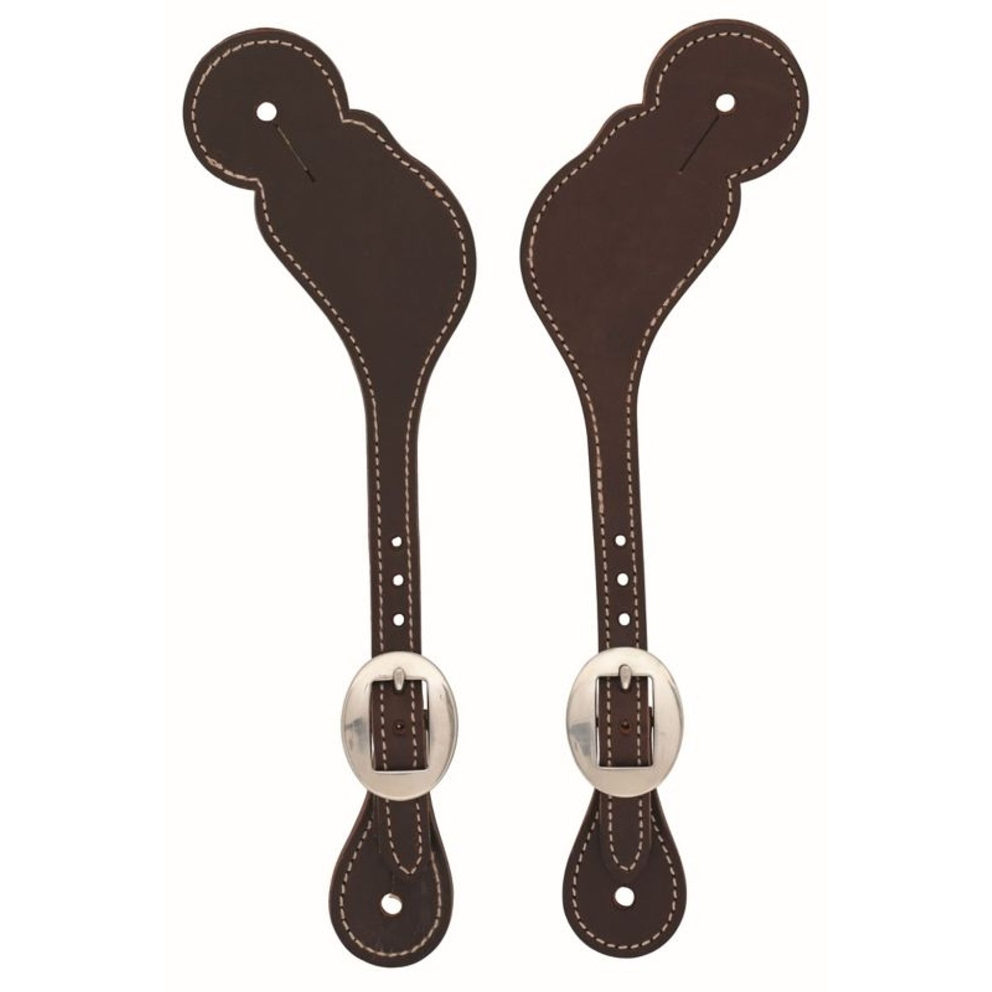 These dependable burgundy latigo leather spur straps are dressed with harness dressing and lined for added durability and strength. SS Cart Buckle.