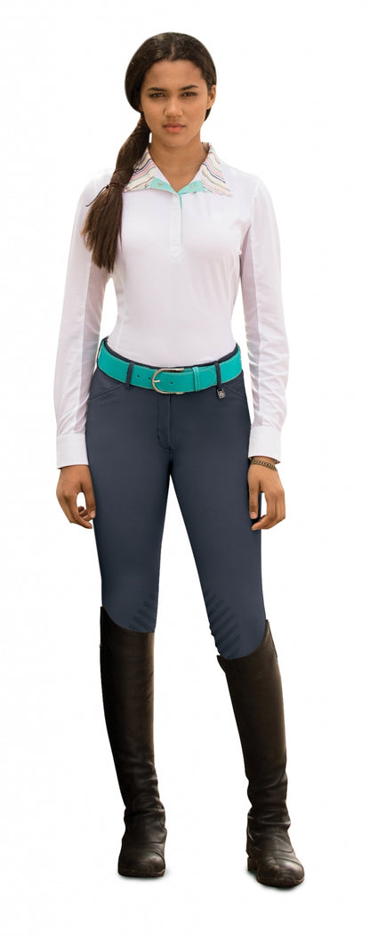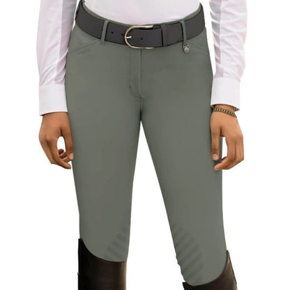 Romfh's softest, most luxurious breech! Made of Softtouch, a technical micro-PU fabric, with silicone knee patches for ultimate grip without compromising feel. Mid rise, with a wide, non-binding, contoured waistband and strategically placed back yoke to keep you looking your best. Stretch calf panels reduce bulk and pressure points under tall boots.