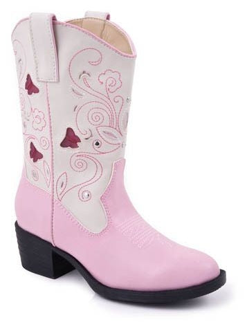 The RoperGirls Faux LeatherButterfly Western LightsBoots are super cute witha butterflydesign and lights on shaft and heel Adorable pink bootsare sure to please any cowgirl.