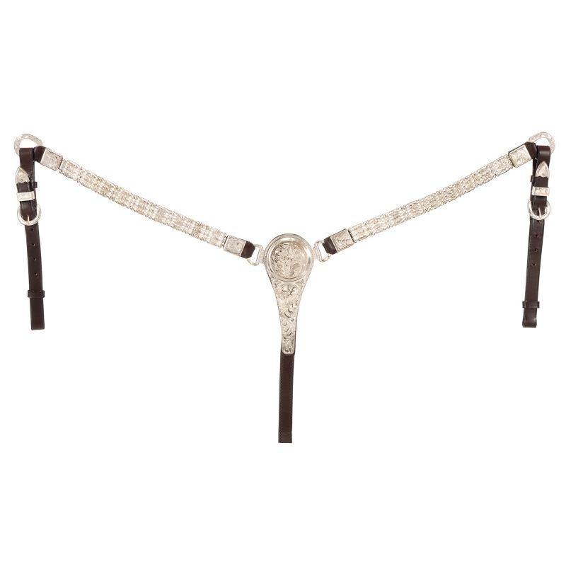 Crafted of fine bridle leather highlighted with engraved silver ferrules. A very classy breastcollar!